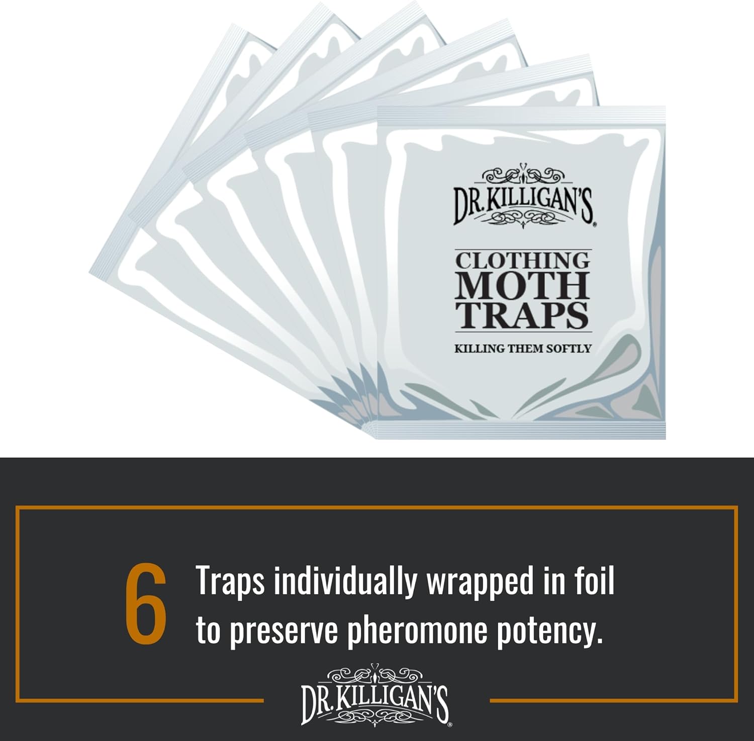 - Organic Solution with Killer Results — Get closet moth protection for your Wool, Cashmere, Fur, Feathers, Carpet and more with Dr. Killigan’s people and pet-friendly moth traps. Our Advanced Formula mixes double-potent pheromones and the stickiest glue to lure and capture ALL adult male clothes moths and end the reproduction cycle. The complementary design maximizes air flow and increases effectiveness.