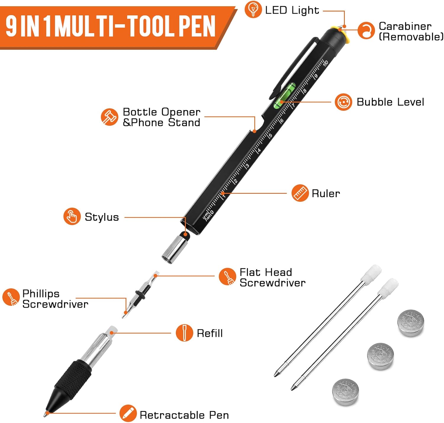 • Gifts for Dad: This 9 in 1 multitool pen can be as gifts for men who have everything, men women who like DIY design. It is a cool gadget for men dad husband to daily use, suitable for stocking stuffers for men adults husband as an unique gift.