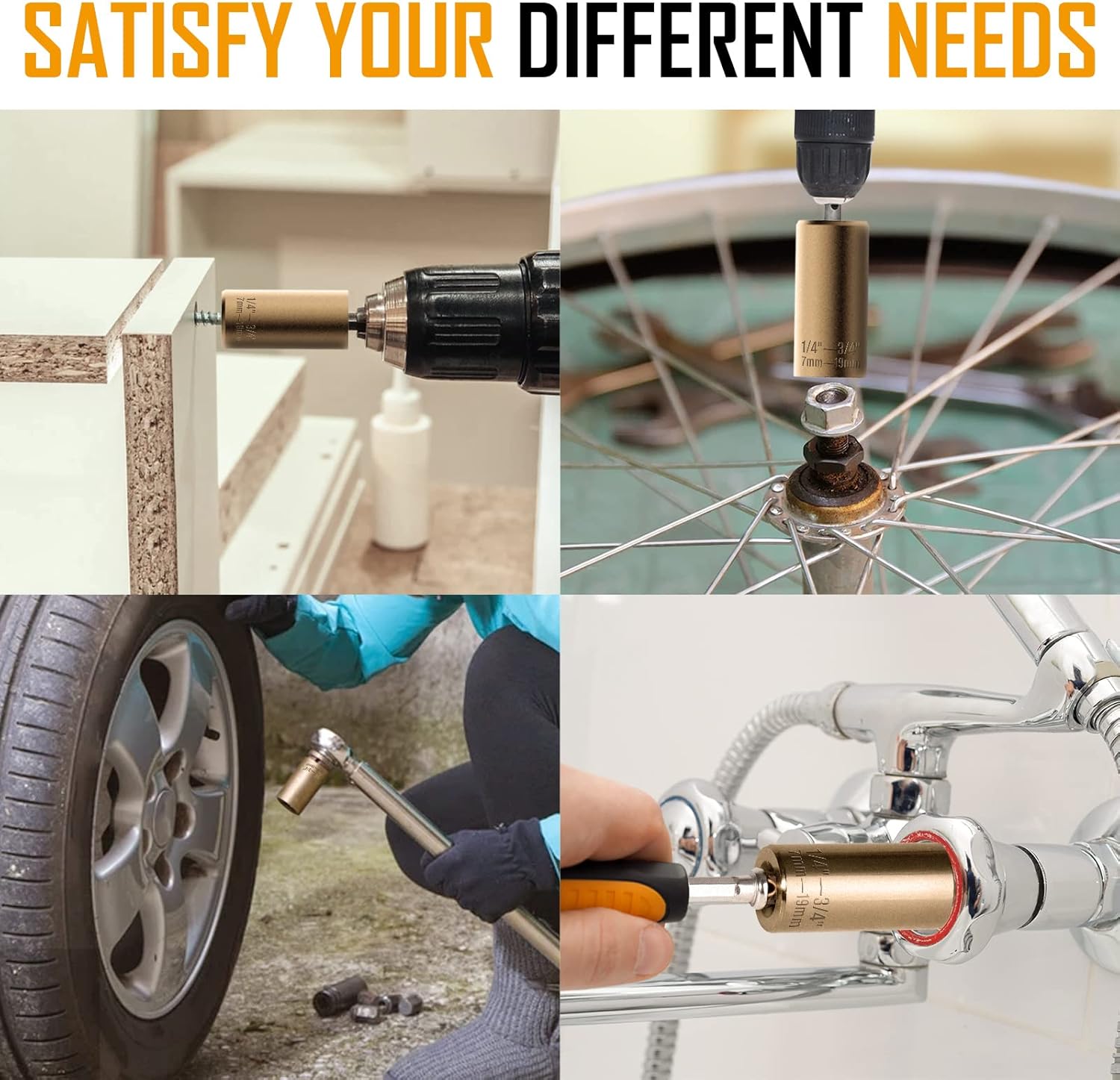 - 【Tools for Men】 - You can easily attach our universal to your cordless screwdriver or ratchet. Replaces the hexagon wrench, hexagon nuts, open-end wrenches and many more & saves a lot of space in your toolbox. A must-have in any household