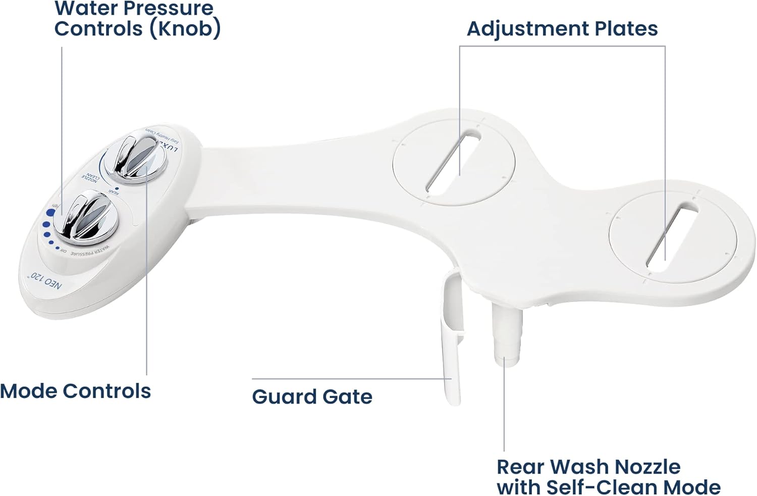 - LUXE Bidet NEO 120 - Single Nozzle, Self-Cleaning, Non-Electric Bidet Attachment for Toilet Seat, Adjustable Water Pressure, Rear Wash (White)