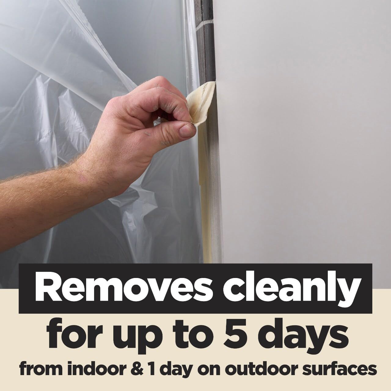 - DAMAGE-FREE ADHESIVE: Scotch Brand Masking Tape can stay on for up to five days on interior surfaces and one day on exterior surfaces, and it removes easily without leaving a sticky residue behind