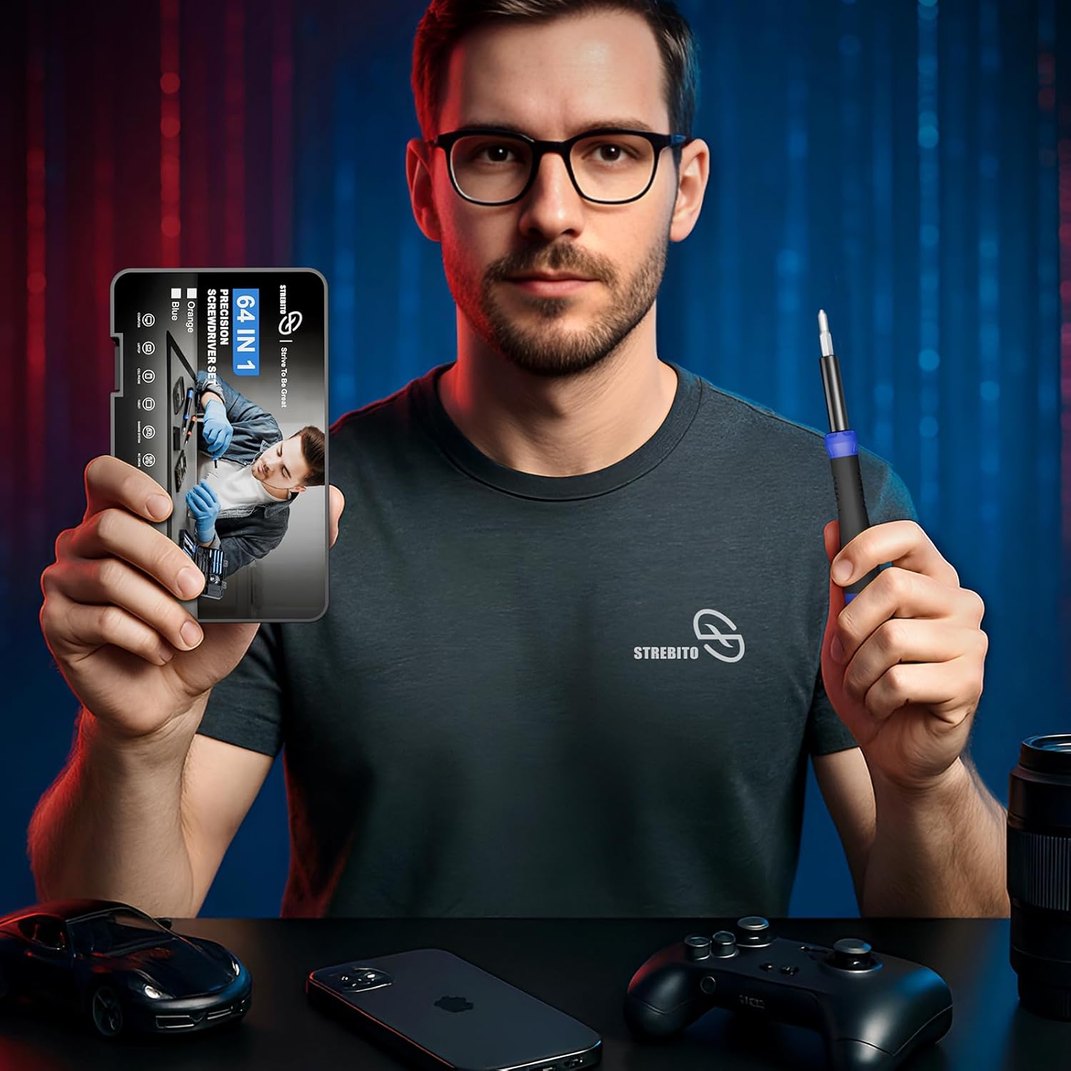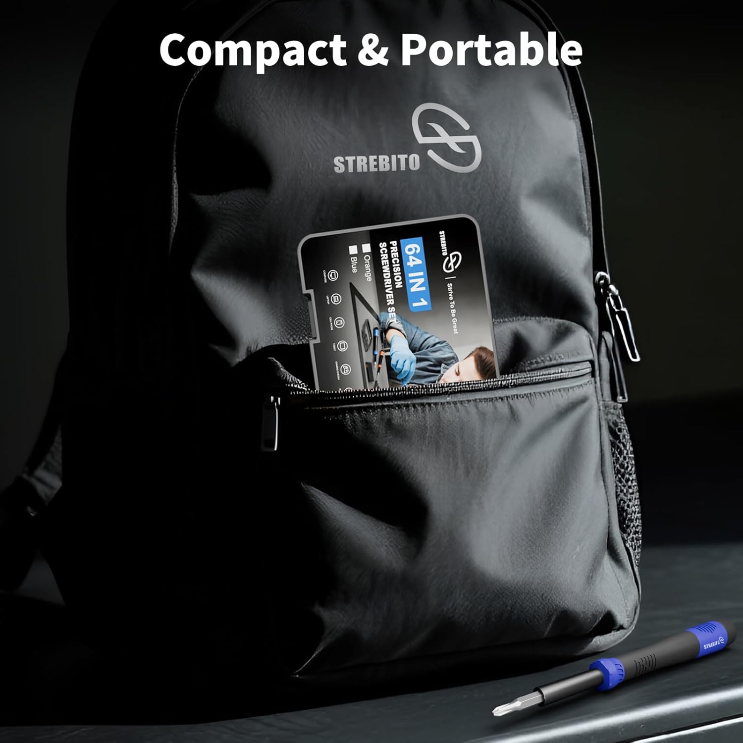 STREBITO Small Precision Screwdriver Set 64-piece with Torx, Triwing, Pentalobe, Electronics Repair Tool Kit for Computer, PC, Laptop, Macbook, Tablet, Phone, PS5, XBOX, Switch, Glass, Ring Doorbell