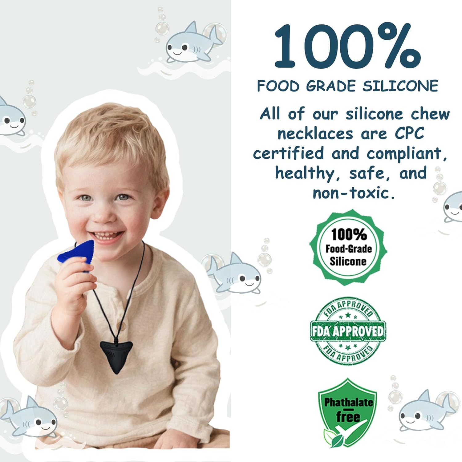 - EASY TO CLEAN - Shark tooth sensory toys for kids 5-7 is easy to clean in the dishwasher or by hand wash / rinse with just water. Freezer safe, these chewy necklaces for sensory kids can be a perfect gift for people with sensory needs.