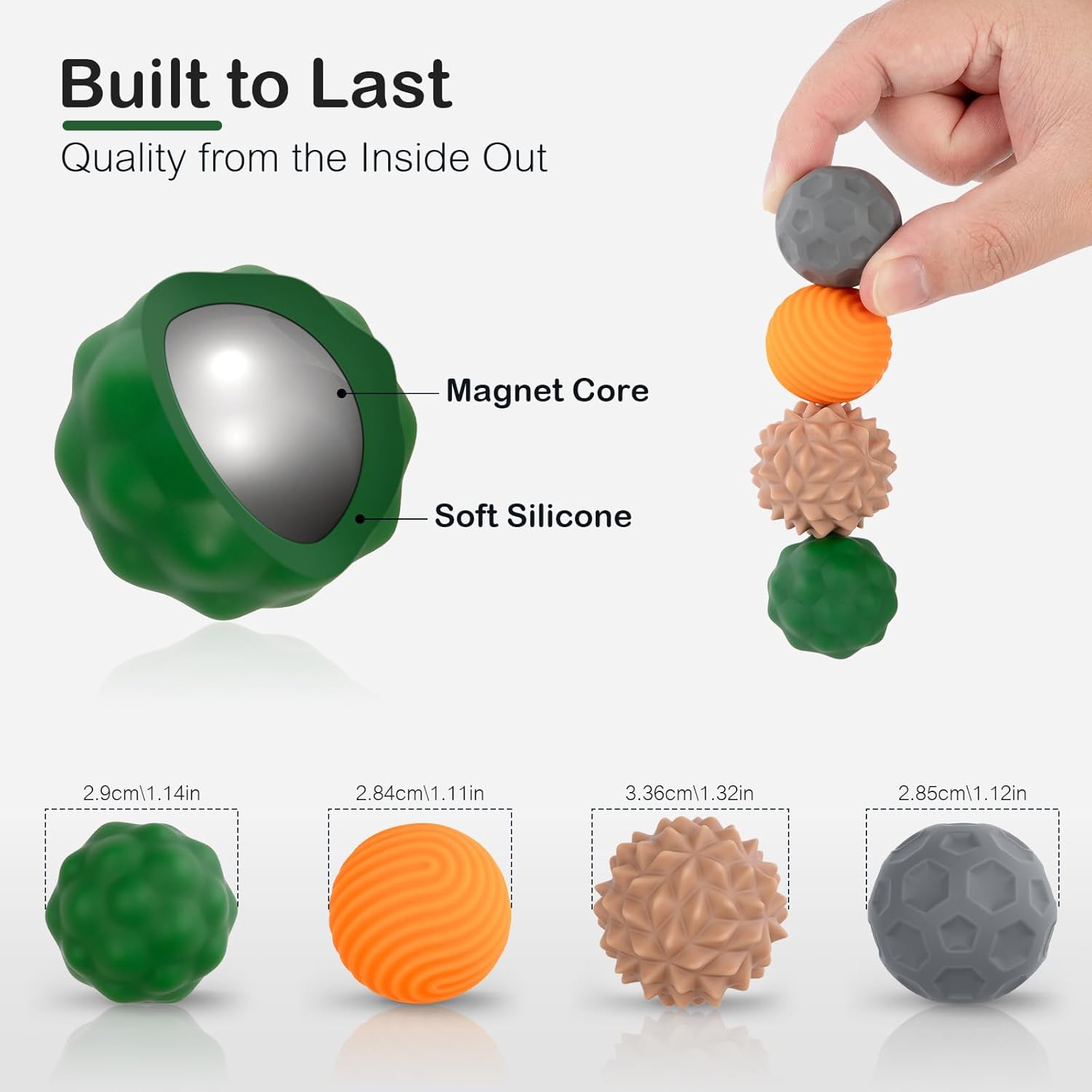 - Fidget Toys Adults – 4PCS Magnetic Silicone Stress Balls for Anxiety, Focus & ADHD Relief, Textured Sensory Desk Gadgets, Stocking Stuffers or White Elephant Gifts for Men Women Teens