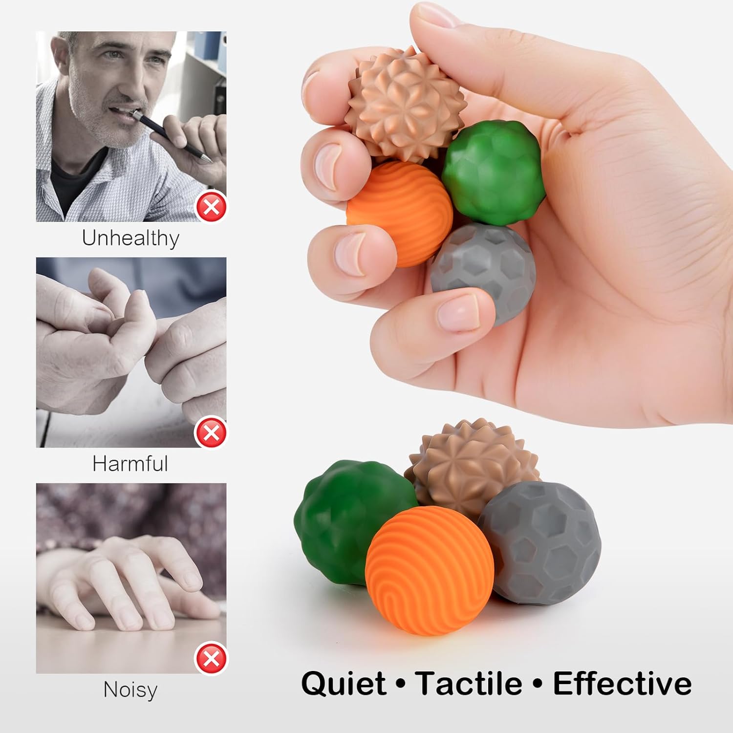 - Tactile Sensory Experience – Each ball offers a different surface texture to provide satisfying sensory input, ideal for ADHD, skin-picking, autism support, or long office hours