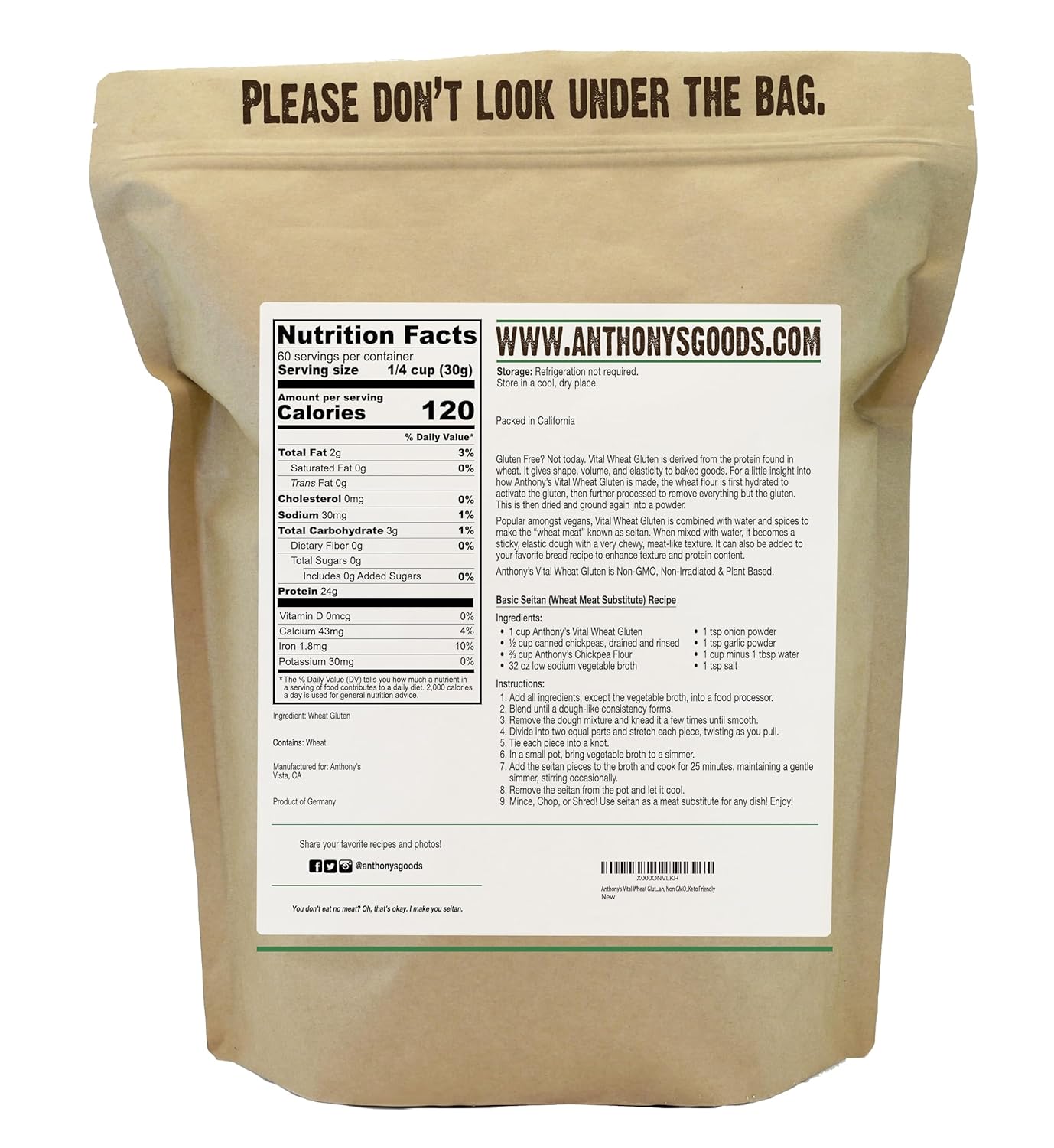 - Anthony's Vital Wheat Gluten, 4 lb, Vegan, Non GMO, Keto Friendly, Low Carb