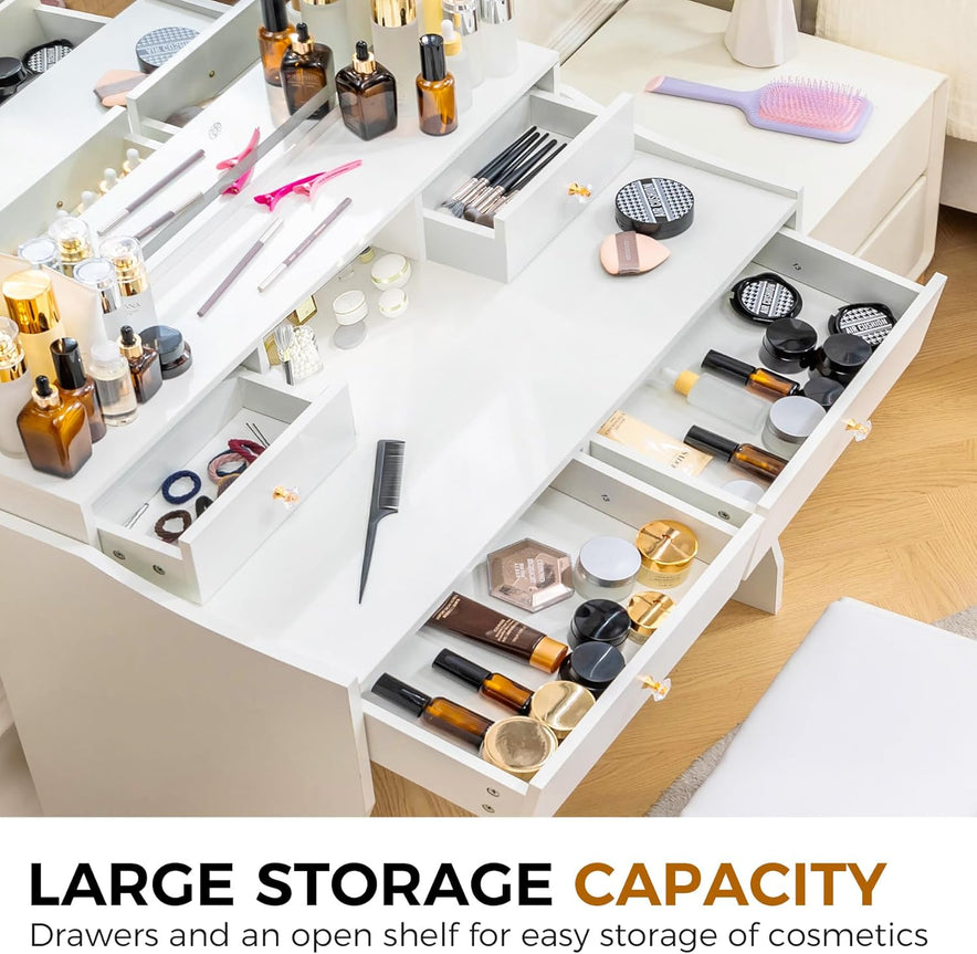 - Elegant and Durable Design - Finished in a timeless finish with crystal-inspired knobs, the vanity boasts premium construction and durability. You and your family may have it for a long-term use. All parts and accessories are labeled, and you can easily assemble this vanity desk by following the clear instructions