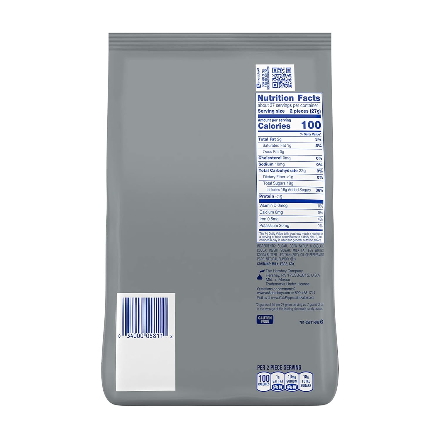- Kosher certified, gluten free dark chocolate covered YORK peppermint patties individually wrapped with 70 percent less fat packaged in a bulk candy bag for concession stands and fundraising events